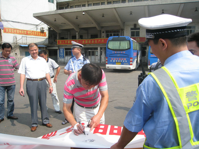 9月4日,市客運(yùn)分公司與交警支隊(duì)二大隊(duì)在安慶汽車(chē)站停車(chē)場(chǎng)內(nèi)開(kāi)展“文明交通我承諾,文明交通我參與”駕駛員簽名活動(dòng);顒(dòng)首先由交警支隊(duì)二大隊(duì)二中隊(duì)楊指導(dǎo)員宣傳5種易發(fā)生道路交通事故的不良及違法駕駛行為,楊指要求駕駛員駕駛車(chē)輛做到:不超員、不超速、不疲勞駕駛、不酒后駕駛、不無(wú)證駕駛,做文明禮讓安全行車(chē)的文明駕駛員;隨后進(jìn)行了駕駛員簽名,市客運(yùn)分公司110名未當(dāng)班的駕駛員參加了本次簽名活動(dòng)。